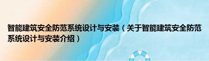 免责声明:本文由用户上传,如有侵权请联系删除!大家好,小钱来为大家解答以上的问题。智能建筑安全防范系统设计与安装,关于智能建筑安全防范系统设计与安装介绍这个很多人还不知道,现在让我们一起来看看吧!