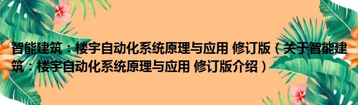 1、 《智能建筑:楼宇自动化系统原理与应用(修订版)》是2011年9月由电子工业出版社出版的图书,作者是王再英,韩养社。