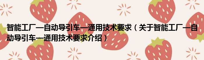 大家好,小钱来为大家解答以上的问题。智能工厂—自动导引车—通用技术要求,关于智能工厂—自动导引车—通用技术要求介绍这个很多人还不知道,现在让我们一起来看看吧!
