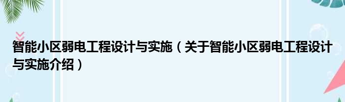 免责声明:本文由用户上传,如有侵权请联系删除!大家好,小钱来为大家解答以上的问题。智能小区弱电工程设计与实施,关于智能小区弱电工程设计与实施介绍这个很多人还不知道,现在让我们一起来看看吧!