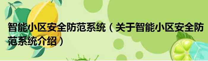 关于智能小区安全防范系统到此分享完毕,希望能帮助到您。