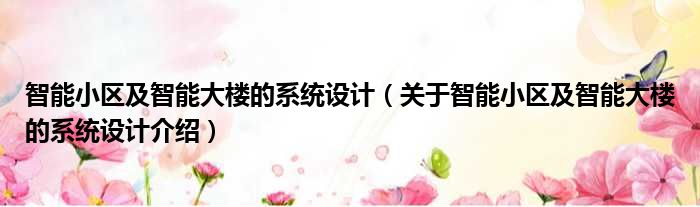 免责声明:本文由用户上传,如有侵权请联系删除!大家好,小钱来为大家解答以上的问题。智能小区及智能大楼的系统设计,关于智能小区及智能大楼的系统设计介绍这个很多人还不知道,现在让我们一起来看看吧!