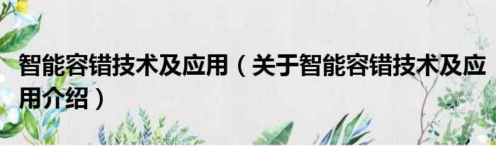 免责声明:本文由用户上传,如有侵权请联系删除!大家好,小钱来为大家解答以上的问题。智能容错技术及应用,关于智能容错技术及应用介绍这个很多人还不知道,现在让我们一起来看看吧!