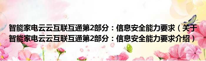 1、 《智能家电云云互联互通第2部分:信息安全能力要求》是2019年03月15日实施的一项行业标准。