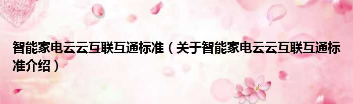 关于智能家电云云互联互通标准到此分享完毕,希望能帮助到您。