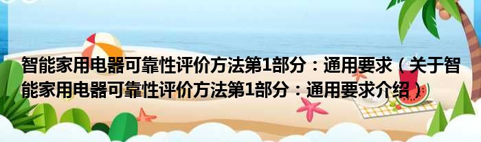 1、 《智能家用电器可靠性评价方法第1部分:通用要求》是2020年5月1日实施的一项中国国家标准。