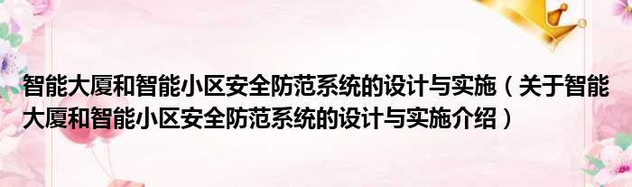 大家好,小钱来为大家解答以上的问题。智能大厦和智能小区安全防范系统的设计与实施,关于智能大厦和智能小区安全防范系统的设计与实施介绍这个很多人还不知道,现在让我们一起来看看吧!
