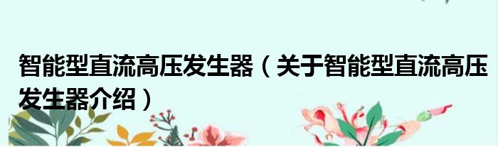 大家好,小钱来为大家解答以上的问题。智能型直流高压发生器,关于智能型直流高压发生器介绍这个很多人还不知道,现在让我们一起来看看吧!