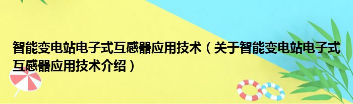 关于智能变电站电子式互感器应用技术到此分享完毕,希望能帮助到您。