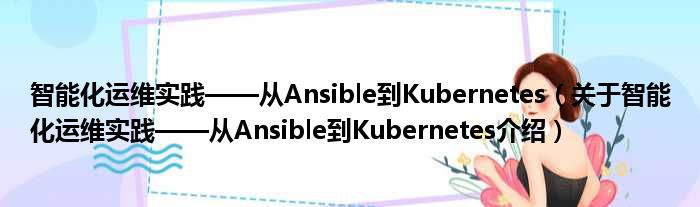 1、 《智能化运维实践——从Ansible到Kubernetes》 是电子工业出版社出版图书,作者是吴文豪,孙靖翀。