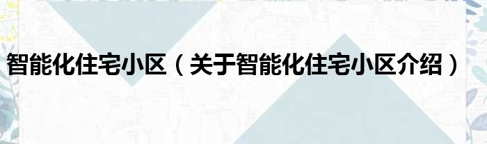 大家好,小钱来为大家解答以上的问题。智能化住宅小区,关于智能化住宅小区介绍这个很多人还不知道,现在让我们一起来看看吧!