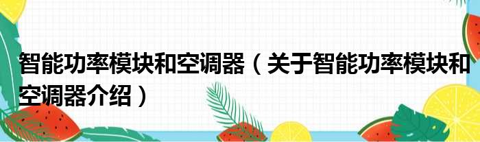 大家好,小钱来为大家解答以上的问题。智能功率模块和空调器,关于智能功率模块和空调器介绍这个很多人还不知道,现在让我们一起来看看吧!