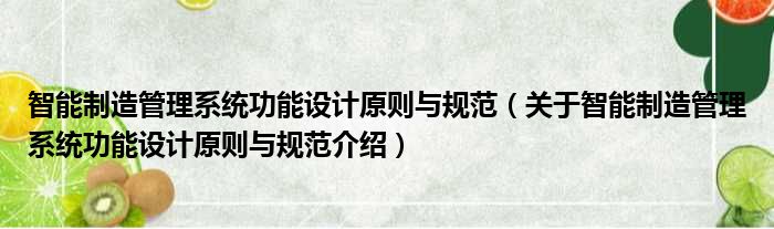 大家好,小钱来为大家解答以上的问题。智能制造管理系统功能设计原则与规范,关于智能制造管理系统功能设计原则与规范介绍这个很多人还不知道,现在让我们一起来看看吧!