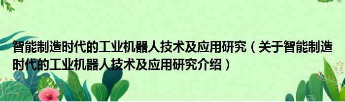 免责声明:本文由用户上传,如有侵权请联系删除!大家好,小钱来为大家解答以上的问题。智能制造时代的工业机器人技术及应用研究,关于智能制造时代的工业机器人技术及应用研究介绍这个很多人还不知道,现在让我们一起来看看吧!
