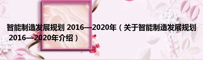 大家好,小钱来为大家解答以上的问题。智能制造发展规划 2016—2020年,关于智能制造发展规划 2016—2020年介绍这个很多人还不知道,现在让我们一起来看看吧!