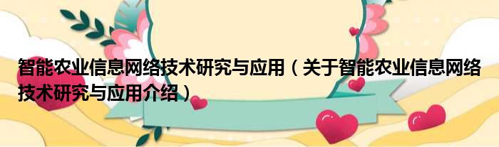 关于智能农业信息网络技术研究与应用到此分享完毕,希望能帮助到您。