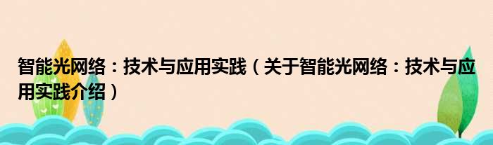 大家好,小钱来为大家解答以上的问题。智能光网络:技术与应用实践,关于智能光网络:技术与应用实践介绍这个很多人还不知道,现在让我们一起来看看吧!
