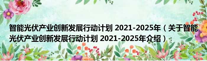大家好,小钱来为大家解答以上的问题。智能光伏产业创新发展行动计划 2021-2025年,关于智能光伏产业创新发展行动计划 2021-2025年介绍这个很多人还不知道,现在让我们一起来看看吧!