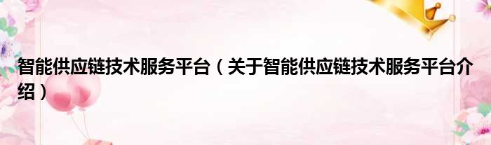关于智能供应链技术服务平台到此分享完毕,希望能帮助到您。
