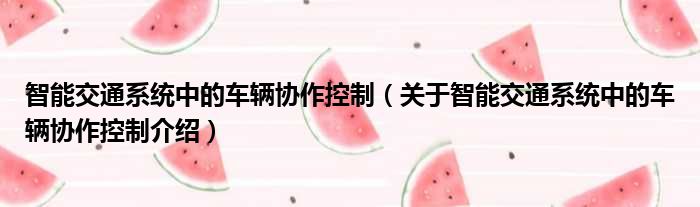 免责声明:本文由用户上传,如有侵权请联系删除!大家好,小钱来为大家解答以上的问题。智能交通系统中的车辆协作控制,关于智能交通系统中的车辆协作控制介绍这个很多人还不知道,现在让我们一起来看看吧!