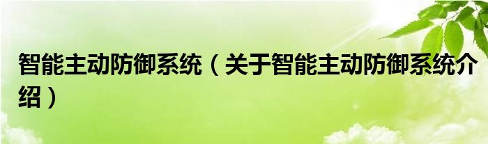 大家好,小钱来为大家解答以上的问题。智能主动防御系统,关于智能主动防御系统介绍这个很多人还不知道,现在让我们一起来看看吧!