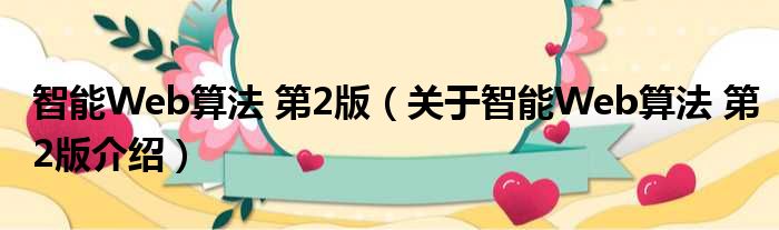 大家好,小钱来为大家解答以上的问题。智能Web算法 第2版,关于智能Web算法 第2版介绍这个很多人还不知道,现在让我们一起来看看吧!