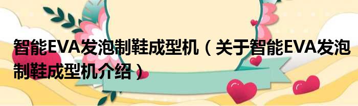 关于智能EVA发泡制鞋成型机到此分享完毕,希望能帮助到您。