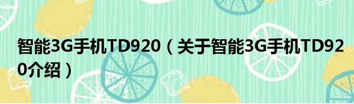 1、 智能3G手机TD920是智能品牌下的一款手机。