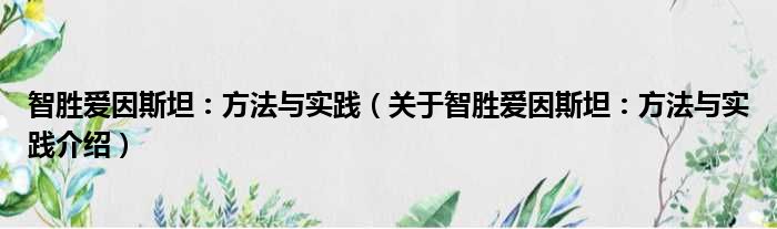 免责声明:本文由用户上传,如有侵权请联系删除!大家好,小钱来为大家解答以上的问题。智胜爱因斯坦:方法与实践,关于智胜爱因斯坦:方法与实践介绍这个很多人还不知道,现在让我们一起来看看吧!