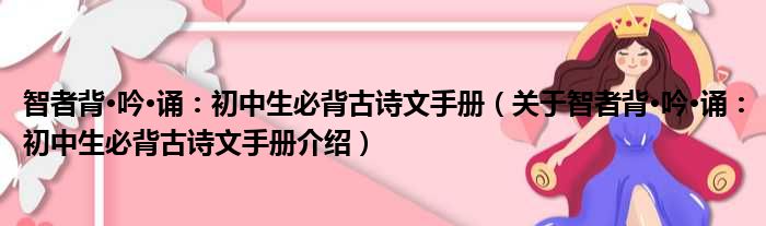 2、《智者背·吟·诵:初中生必背古诗文手册(中考必备)》为其中一本操作书,目的是让学生通过背诵文言名句名篇来提升对语文文化的学习和沉淀,另一方面,作为备考中考的一个重要手段。