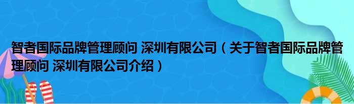 关于智者国际品牌管理顾问 深圳有限公司到此分享完毕,希望能帮助到您。