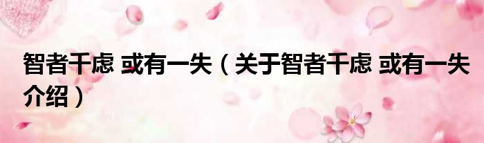 关于智者千虑,或有一失到此分享完毕,希望能帮助到您。