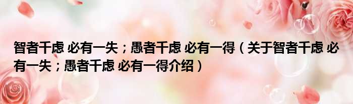 免责声明:本文由用户上传,如有侵权请联系删除!大家好,小钱来为大家解答以上的问题。智者千虑,必有一失;愚者千虑,必有一得,关于智者千虑,必有一失;愚者千虑,必有一得介绍这个很多人还不知道,现在让我们一起来看看吧!