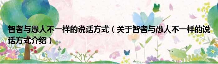 免责声明:本文由用户上传,如有侵权请联系删除!大家好,小钱来为大家解答以上的问题。智者与愚人不一样的说话方式,关于智者与愚人不一样的说话方式介绍这个很多人还不知道,现在让我们一起来看看吧!