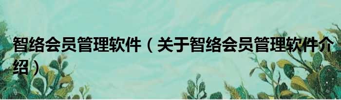 关于智络会员管理软件到此分享完毕,希望能帮助到您。
