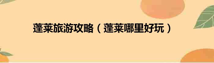 关于蓬莱旅游攻略,蓬莱哪里好玩的介绍到此结束,希望对大家有所帮助。