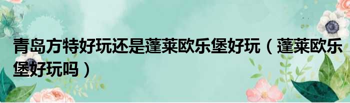 关于青岛方特好玩还是蓬莱欧乐堡好玩,蓬莱欧乐堡好玩吗的介绍到此结束,希望对大家有所帮助。