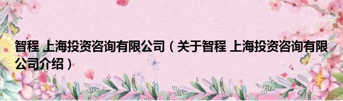 关于智程 上海投资咨询有限公司到此分享完毕,希望能帮助到您。