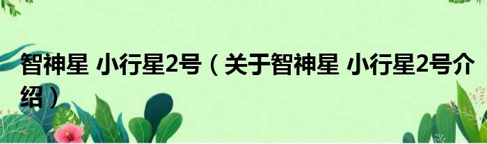 免责声明:本文由用户上传,如有侵权请联系删除!大家好,小钱来为大家解答以上的问题。智神星 小行星2号,关于智神星 小行星2号介绍这个很多人还不知道,现在让我们一起来看看吧!