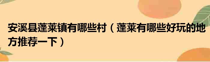 大家好,小纵来为大家解答以上问题。安溪县蓬莱镇有哪些村,蓬莱有哪些好玩的地方推荐一下这个很多人还不清楚,现在一起跟着小编来瞧瞧吧!