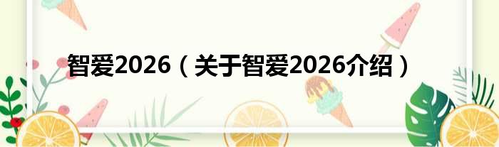 大家好,小钱来为大家解答以上的问题。智爱2026,关于智爱2026介绍这个很多人还不知道,现在让我们一起来看看吧!