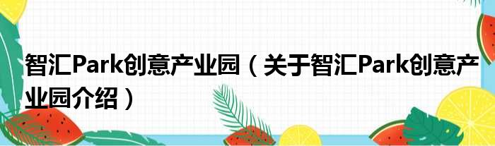 关于智汇Park创意产业园到此分享完毕,希望能帮助到您。