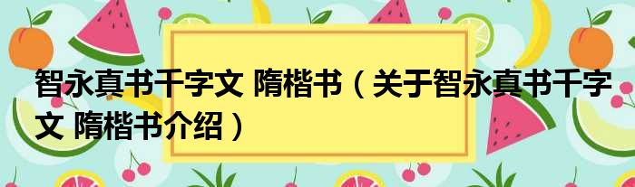 1、 《智永真书千字文(隋楷书)》是2017年湖北教育出版社出版的图书。
