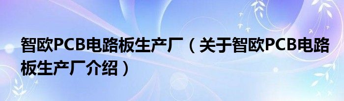 1、 智欧PCB电路板生产厂是一家制造和生产,PCB打样、加急电路板打样、单面PCB、双面电路板,多层线路板的PCB生产厂,本工厂拥有各种进口生产设备,高素质的工程人员。