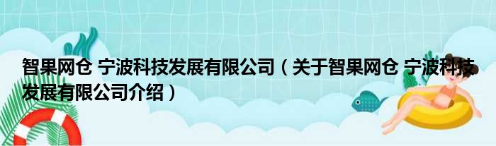 关于智果网仓 宁波科技发展有限公司到此分享完毕,希望能帮助到您。