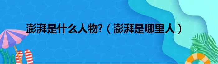 关于澎湃是什么人物?,澎湃是哪里人的介绍到此结束,希望对大家有所帮助。