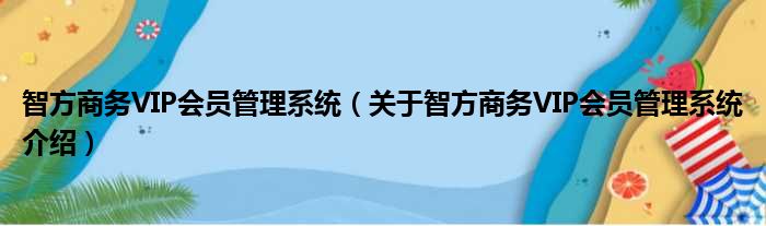 关于智方商务VIP会员管理系统到此分享完毕,希望能帮助到您。