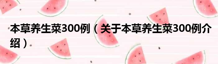 关于本草养生菜300例到此分享完毕,希望能帮助到您。