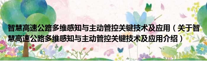 大家好,小钱来为大家解答以上的问题。智慧高速公路多维感知与主动管控关键技术及应用,关于智慧高速公路多维感知与主动管控关键技术及应用介绍这个很多人还不知道,现在让我们一起来看看吧!