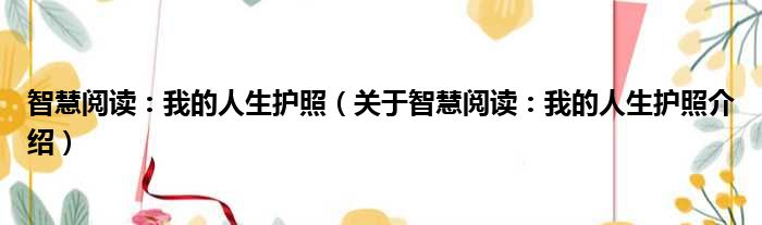 免责声明:本文由用户上传,如有侵权请联系删除!大家好,小钱来为大家解答以上的问题。智慧阅读:我的人生护照,关于智慧阅读:我的人生护照介绍这个很多人还不知道,现在让我们一起来看看吧!